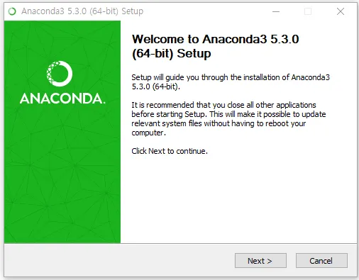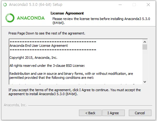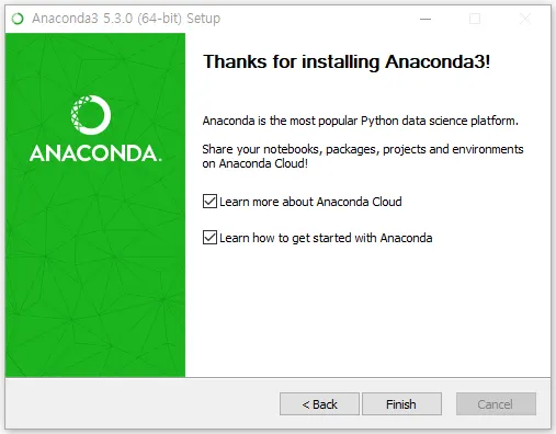 아나콘다에는 파이썬 및 주로 사용되는 1,400개의 패키지와 데이터 과학 패키지들이 포함되어 있어 파이썬을 설치하고 나서 여러 패키지들을 설치해야 하는 수고를 덜어 주고 윈도우즈 환경에서 쉽게 가상환경을 만들고 버전 관리를 할 수 있는 유일한 도구이기도 합니다. 단점이라면 설치 시간이 파이썬만 설치 하는 것 보다 시간이 오래 걸립니다.