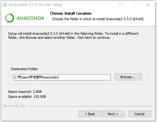 Adding Anaconda to my PATH environment variable(기본 값은 체크 해제)
