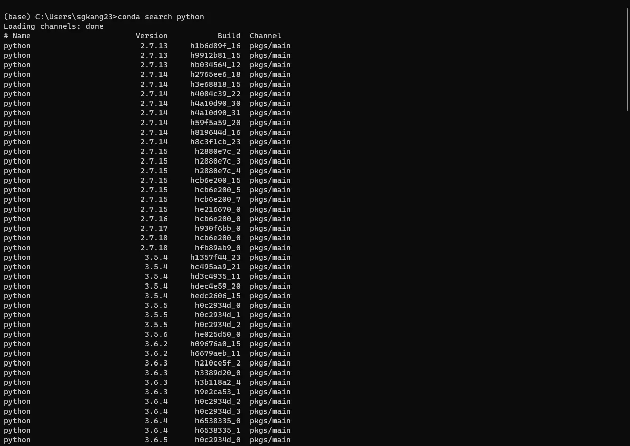 → py39 라는 이름으로 python 3.9.0 환경을 만들어준다